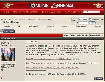 بعد المستوى الرائع الذي يقدمه اللاعب السوري الشاب انس الشربيني المتالق في كرواتيا مع نادي ريجكا طالبت جماهير نادي الارسنال اللندني من خلال المنتديات الرسيمة للنادي طالبت الجماهير اللندنية المدرب الفرنسي ارسين فينغر مدرب فريق ارسنال بان يضم اللاعب الى النادي خصوصا ان ارسين فينغر اعلن انه يرغب ببناء فريق شاب وطالبت الجماهير من فينغر ان يتابع اللاعب وفي حال نال اعجابه يتفاوض مع نادي ريجكا من اجل التعاقد مع اللاعب السوري انس الشربيني خصوصا ان الشربيني صغير السن ويقدم مستويات كبيرة وان المطالب المادية لن تكون كبيرة ابدا على الارسنال ومن المعروف ان ارسين فينغر يتابع منتدى ارسنال الرسمي باستمرار ويتابع اراء الجماهير وطلبته وكان ارسين فينغر اعلن بتصريح لشبكة ال بي بي سي انه يرغب بالتعاقد مع لاعبيين شباب يفيدوا الفريق حاليا وبالمستقبل القريب ووضعت جماهير نادي الارسنال ضمن نفس الموضوع مقاطع فيديو للاعب السوري لكي يتابعه الفرنس ارسين فينغر ووصفت الجماهير اللندنية اللاعب انس الشربيني بالموهبة التي ممكن ان تتطور الى نجم من خلال نادي الارسنال ووصفت بعض الجماهر انس الشربيني انه سيكون المدفعجي الجديد للارسنال خصوصا انه يجيد وبدقة اللعب بالقدميين اليسرى واليمنى
