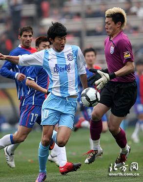 ومع بداية الشوط الثاني اضاع اللاعب بينغ فرصة اولى لشينغهاي اثر انفرادة بالحارس لكنه سدد الكرة جانب المرمى, وتالق بعدها وانغ لي بالتصدي لفرصة خطيرة لنادي تيدا, وحاول بعدها مهاجم تيدا ان يلعب الكرة لوب فوق وانغ لي بعد انفراده به لكن محاولاته مرت بجانب المرمى.