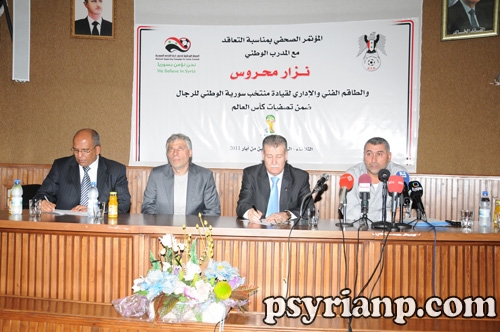 (أتمنى على الجميع أن يكون يداً واحدة مع المنتخب الوطني) بهذه الكلمات ابتدأ المدير الفني الجديد لمنتخب سورية الكابتن نزار محروس حديثه لمثلي الإعلام المحلي والخارجي في المؤتمر الصحفي الذي عقده اتحاد الكرة ظهر الثلاثاء في قاعة المؤتمرات بمبنى اتحاد الكرة بحضور رئيس الإتحاد السيد فاروق سرية ومدير المنتخب عبد القادر كردغلي والكادر الفني والإداري والطبي الجديد للمنتخب.