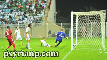وقبل ربع ساعة من النهاية اهتزت الشباك العمانية بهدف بقدم محمود آمنة لكن راية الحكم ألغت الهدف بداعي التسلل وسط اعتراض شديد واستغراب لاعبي وكادر منتخبنا، ومن عرضية سامر عوض كاد المدافع محمد الشيبة أن يسجل بالخطأ في مرماه حين حاول إبعاد الكرة فعلت العارضة لركنية ومنها سجل منتخبنا التعادل المستحق بعد أن هيأ علي دياب عرضية ماهر السيد برأسه نحو الزاوية العكسية وتابعها فراس إسماعيل في المرمى (85).
