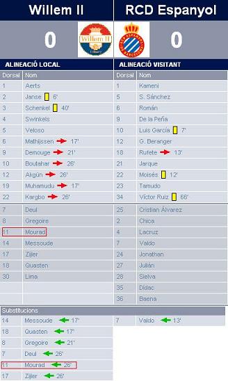 - شارك فريق اسبانيول برشلونة في اللقاء بكامل نجومه ولم يقدموا المستوى المطلوب