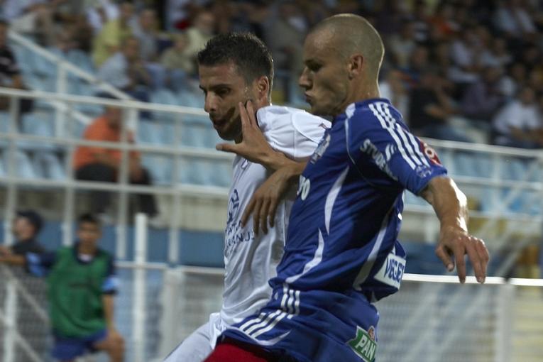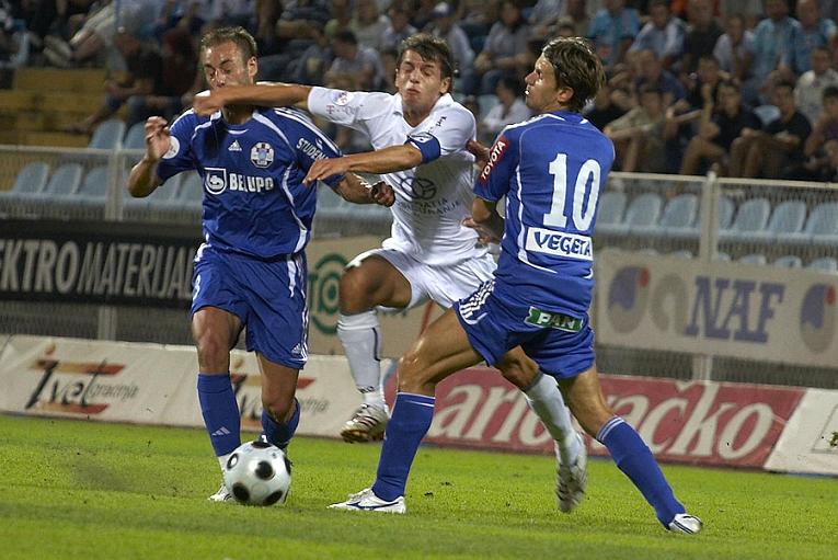 فعلى ملعب كنتدريدا الذي يتسع ل 12000 متفرج حاول الفريق الزائر سلافن مباغتة اصحاب الارض بهدف مبكر وكانت ابرز الفرص في الدقيقة 16 لتستمر بهدها محاولات سلافن مرارا وتكرارا ولكن دون جدوى،لينجح بعدها لاعبنا الشاب كابتن ريجيكا انس الشربيني من تسجيل اولى اهداف فريقه اثر تسديدة صاروخية من خارج منطقة الجزاء في الدقيقة 30 من عمر اللقاء، وبعد الهدف استمر لاعبو سلافن في سوء استغلال الافضلية النسبية لتكون ابرز الفرص الضائعة بواسطة كافال في الدقيقة 44 من تسديدة جميلة تنتهي في احضان حارس ريجيكا رادمان ، لياتي لاعب اخر من سلافن ويهدر كرة جديدة عندما يرسل كرة عرضية الى داخل منطقة الجزاء ولكن دون متابعة ،ليعلن الحكم عن نهاية هذا الشوط بتقدم ريجيكا بهدف المتألق انس الشربيني.