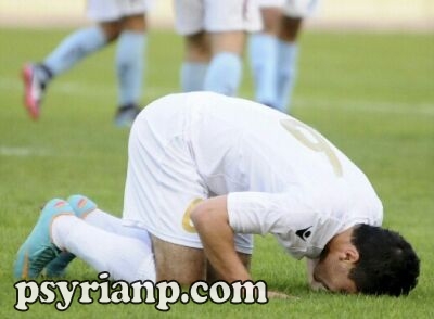 رضوان قلعجي ساجداً بعد تسجيله الهدف.