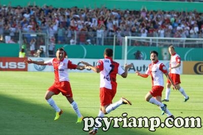 فرحة اياس عثمان بهدف فريقه الوحيد بمرمى يونيون برلين.