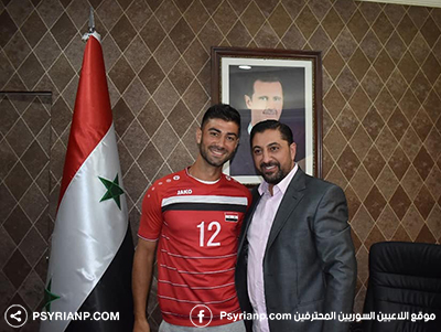 وفي السياق ذاته استقبل رئيس الاتحاد العربي السوري لكرة القدم فادي الدباس لاعبنا الوطني في مكتبه بالاتحاد واطمئن على اتمام كافة الأمور المتعلقة بزيارته للوطن وأبدى الدباس حرصه ودعمه لجميع لاعبي منتخبنا الوطني (محليين.. محترفين.. مغتربين) منوها بمستوى اللاعبين الملتحقين بصفوف المنتخب.
